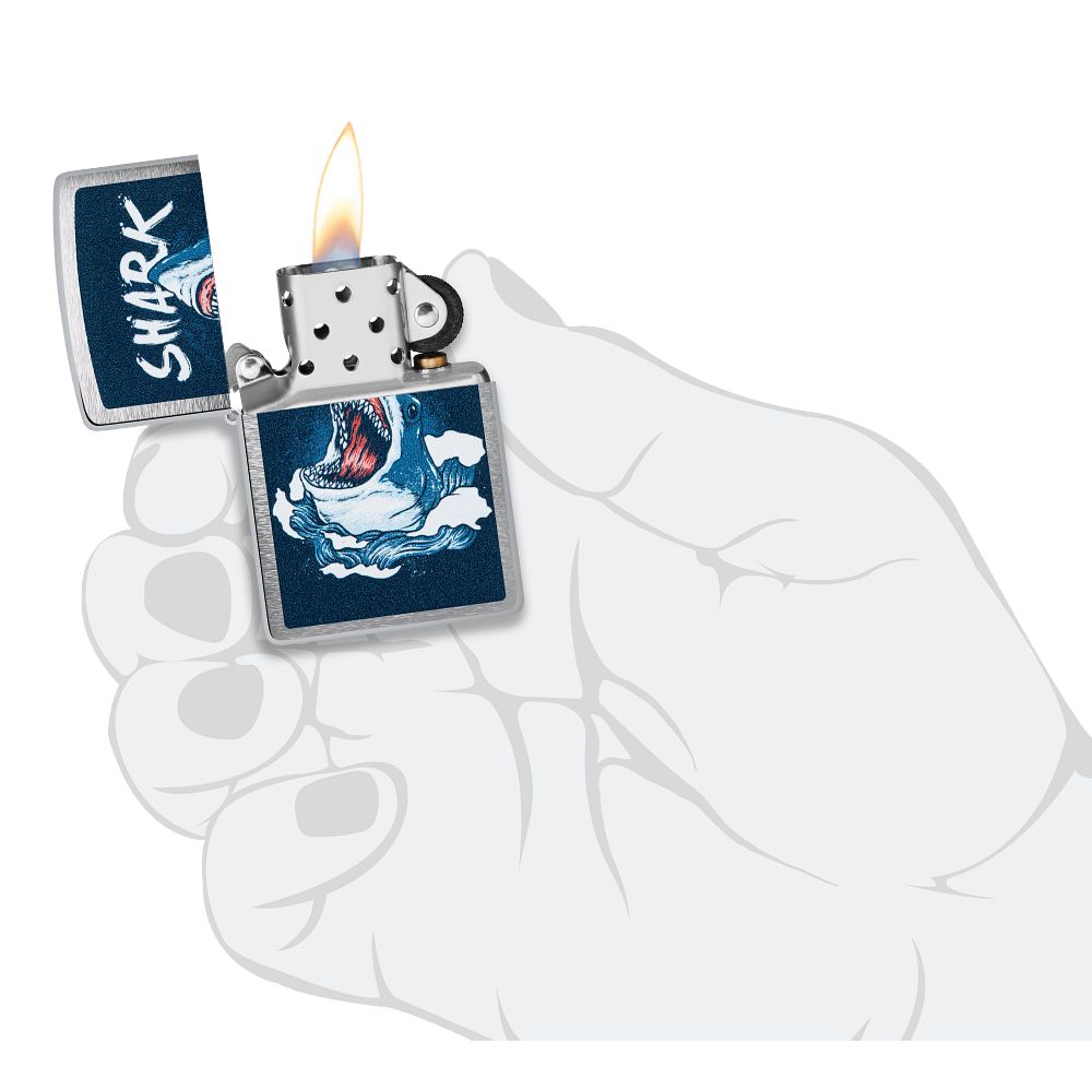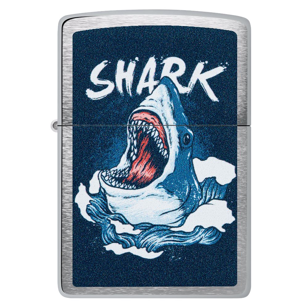 Zippo Shark Emblem. Deze Zippo aansteker heeft een Satin chromen afwerking en aan de voorzijde een...