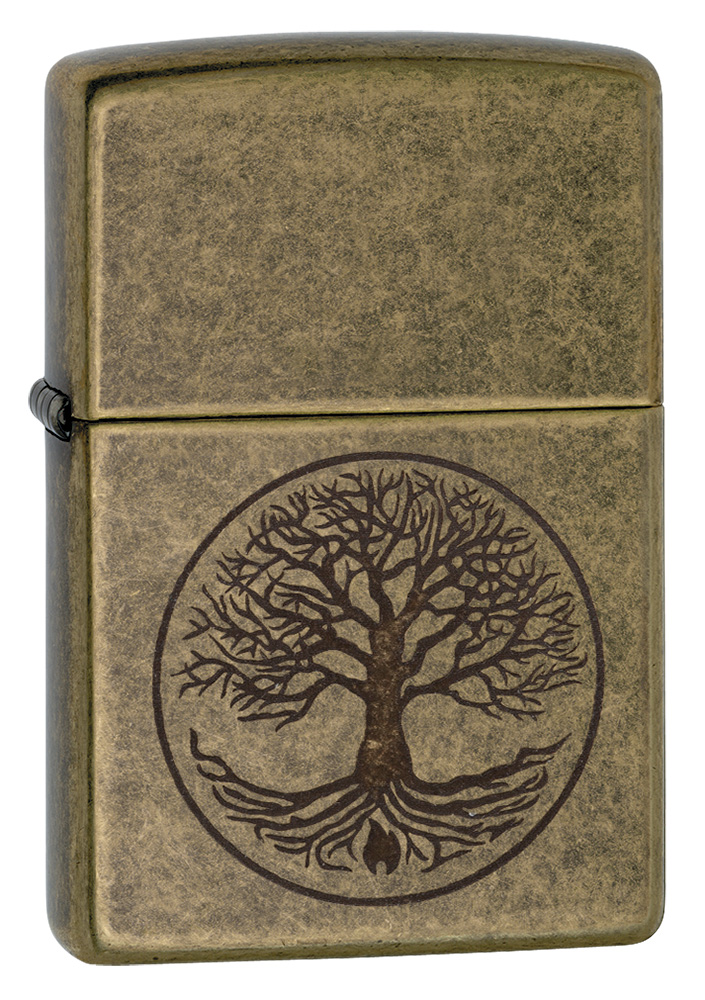 Hoogglans chromen Zippo aansteker met aan de voorzijde een gravure van een...