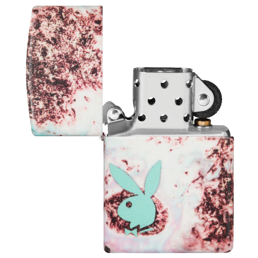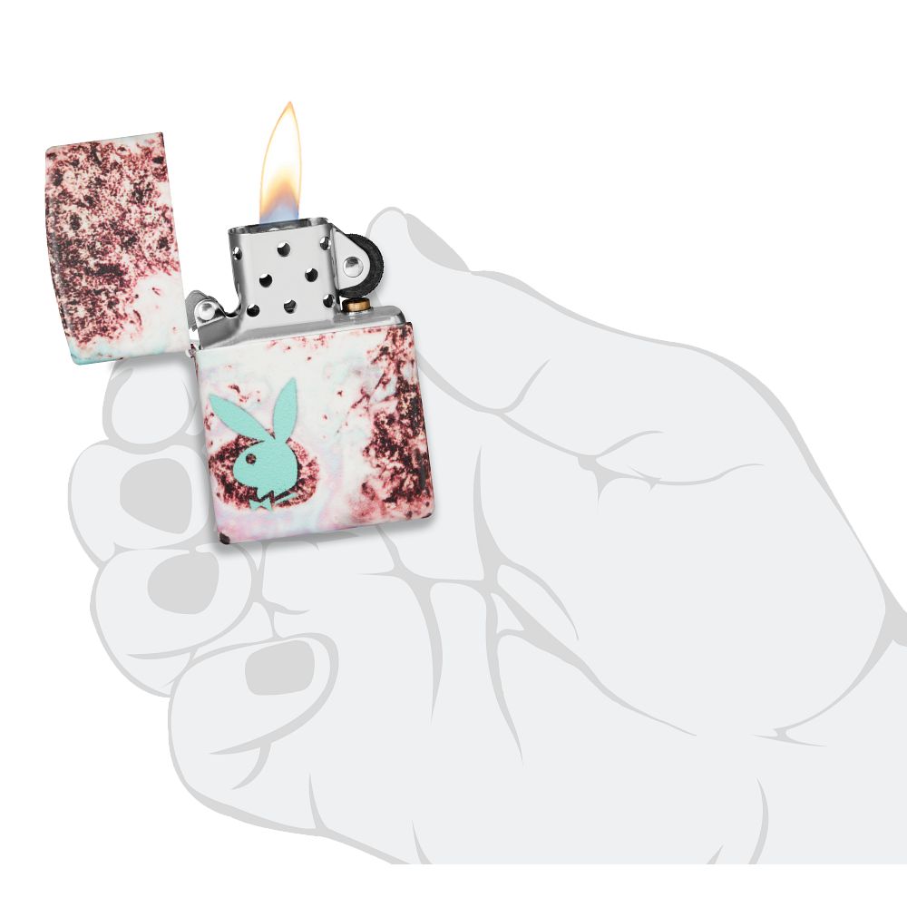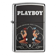 De Zippo Playboy Design aansteker is 360 image afgewerkt. Op de voorzijde van de aansteker is linksonder de playboy bunny te zien en aan de rechterzijde van de aansteker staat de tekst playboy.