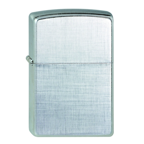 Deze zippo benzine aansteker heeft een linen weave chrome afwerking. Over de voor en achterzijde van de aansteker gaat een diagonaal geborsteld patroon.