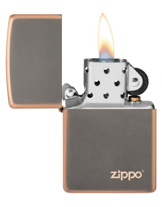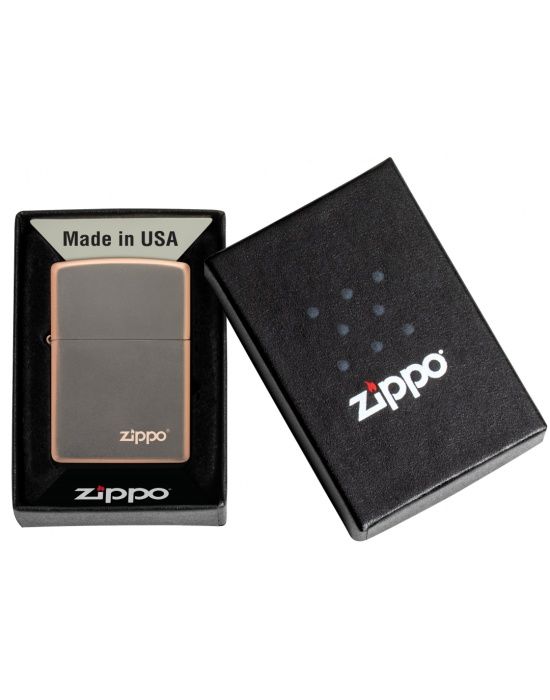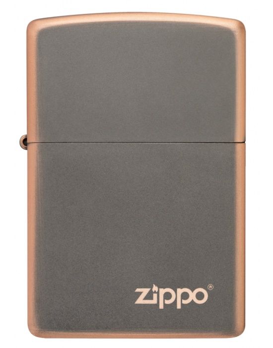 De Zippo Rustic Bronze With Zippo Logo heeft rondom een brons gekleurde rand met rechts onder het Zippo logo.