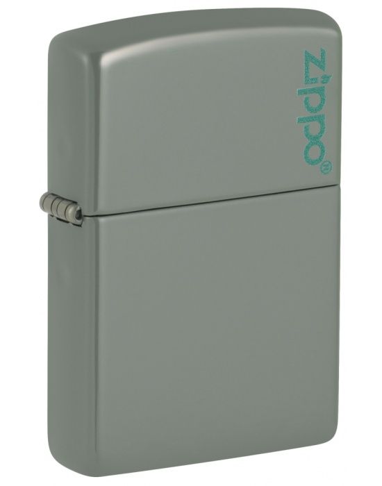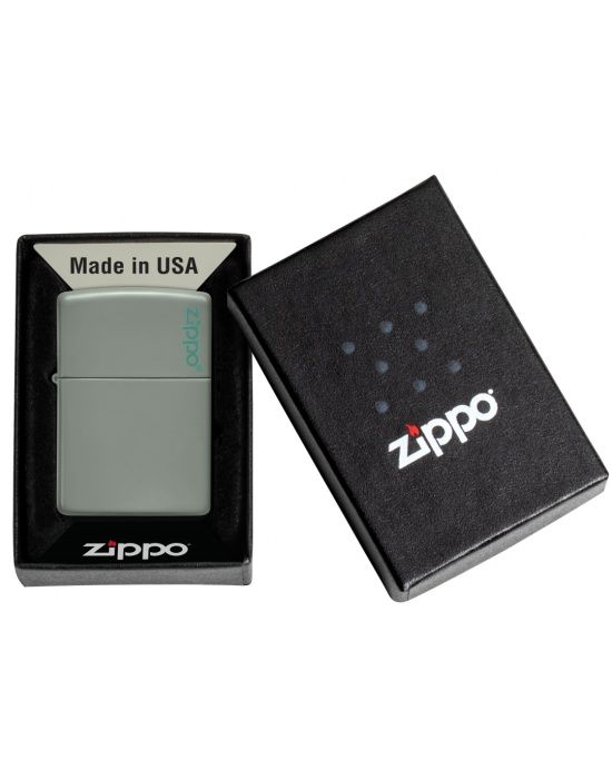 Deze zippo aansteker is rondom mat grijs gekleurd. Rechts op de klep bevind zich een blauw Zippo logo.