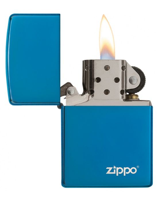 Deze Zippo heeft een donkere blauwe coating rondom de gehele aansteker. Ook is deze Zippo voorzien van een wit Zippo Logo rechts onder.