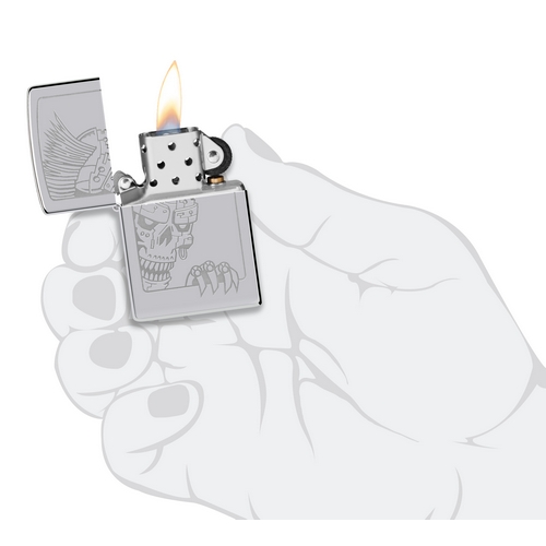 Zippo Ace Skull Design van de ontwerper Rick Rietveld. Deze Zippo heeft een Mercury Glass afwerking...