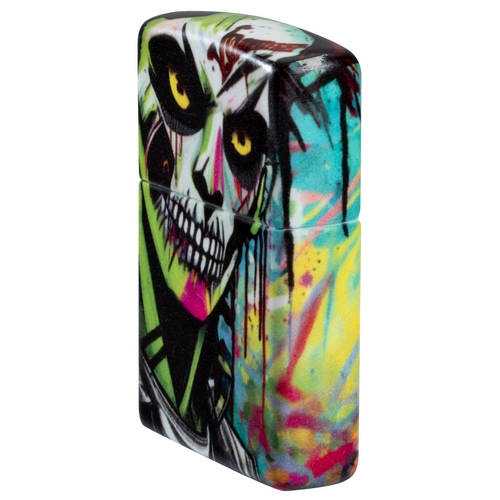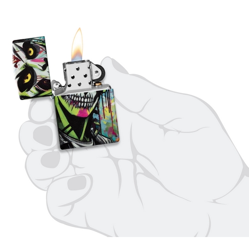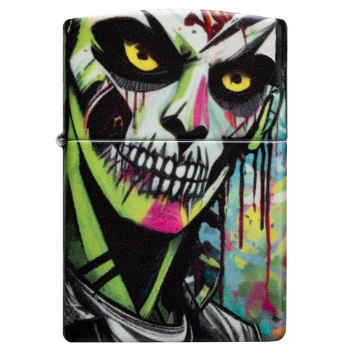 De Zippo Punk Zombie Skull Design is over de gehele aansteker een kleurprint van een punk zombie skull.