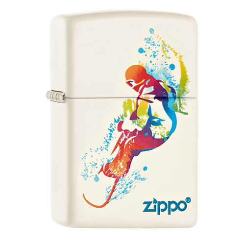 Witte Zippo aansteker met een kleuren...