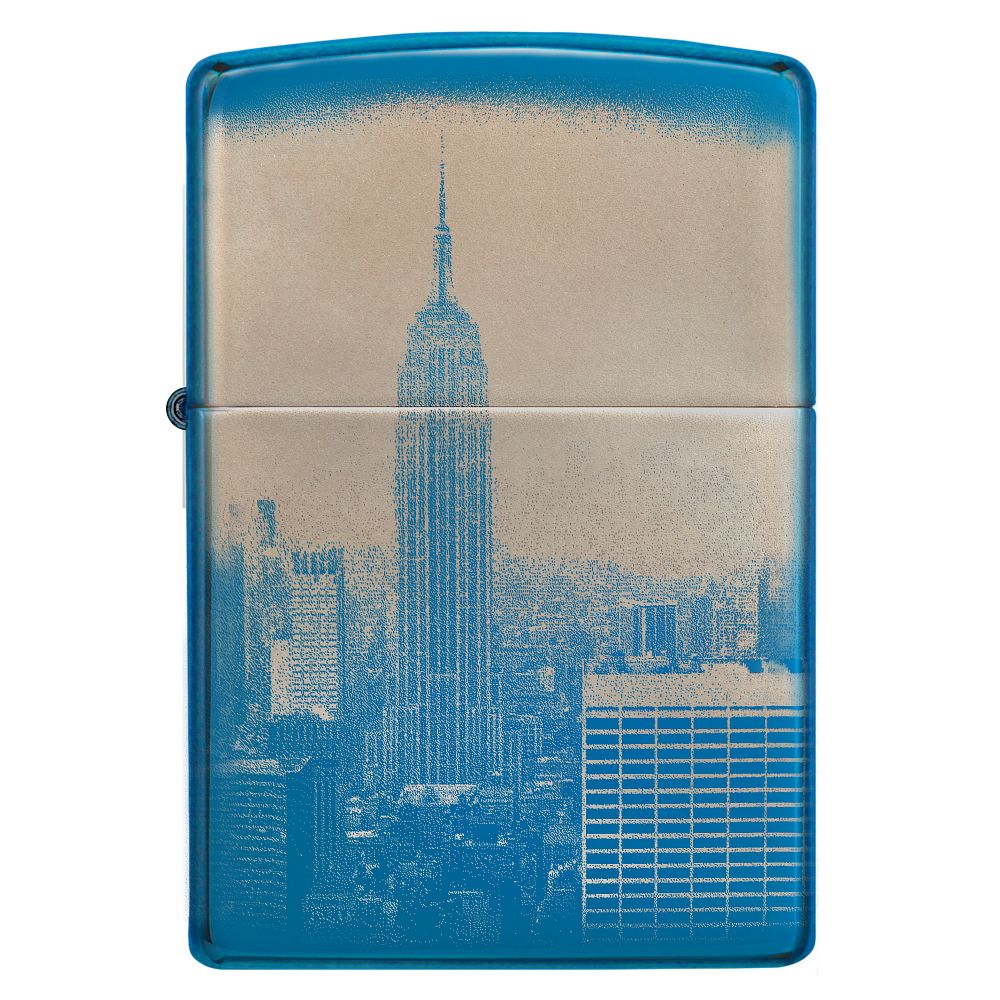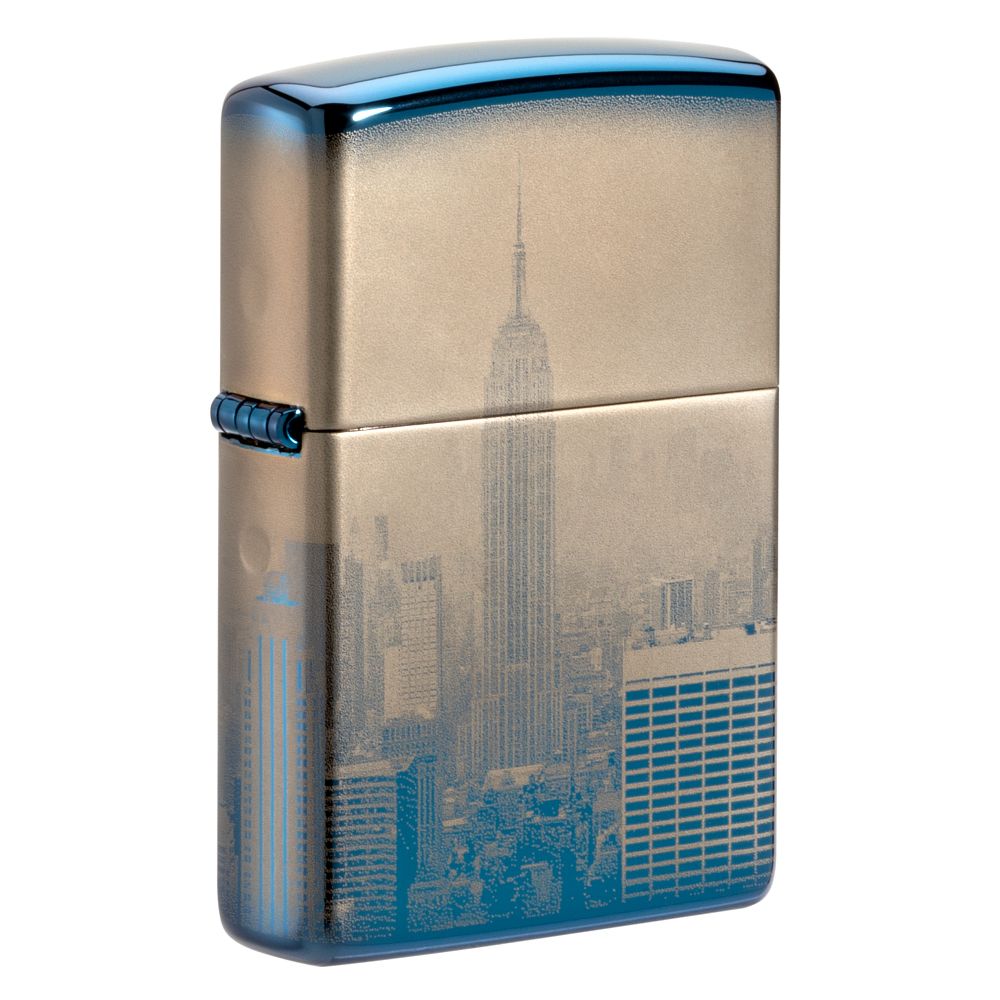 Deze aansteker heeft een hoogglans afwerking in de kleur blauw. Deze aansteker heeft een lasergravure rondom, waardoor je de skyline van New York ziet.