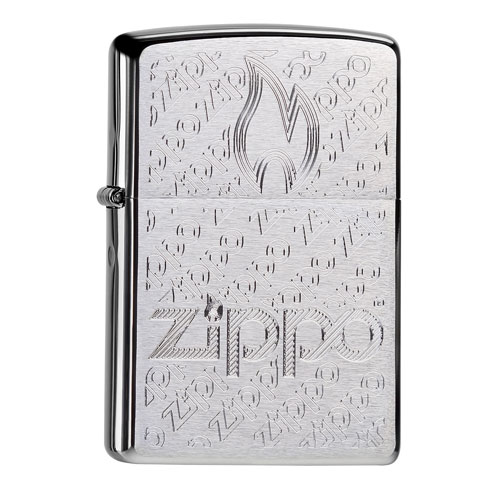 Zippo aansteker met een geborsteld chromen afwerking en aan de voorzijde een...