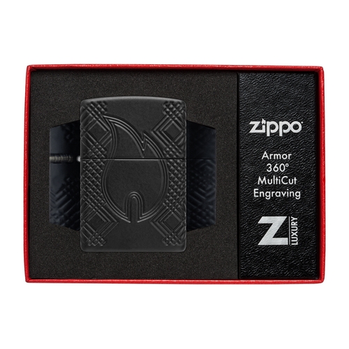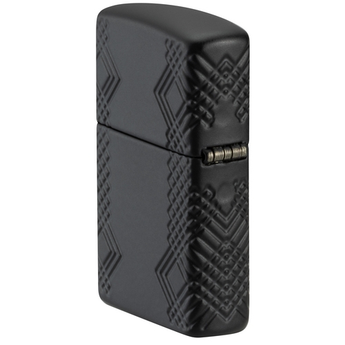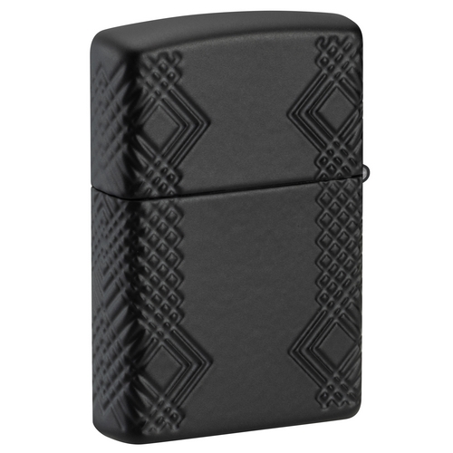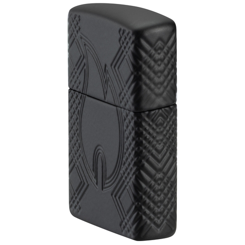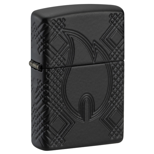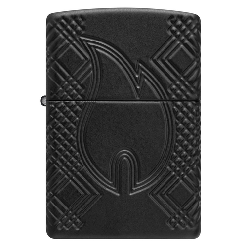 Mat zwarte Zippo aansteker met aan de voorzijde een opdruk...