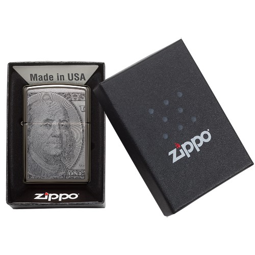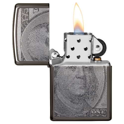 Zwarte Zippo aansteker met aan de voorzijde een...