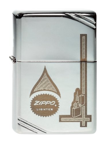 De Zippo heeft een gravure van diagionale...