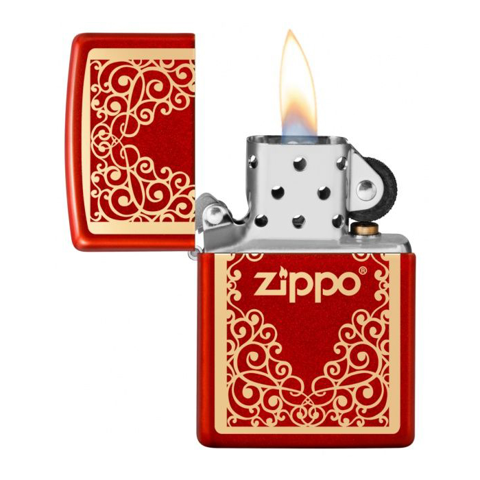 Zippo met 4 Zippo Logo's op een 3D embleem. Deze Zipo heeft de Zippo code 2.004.503.