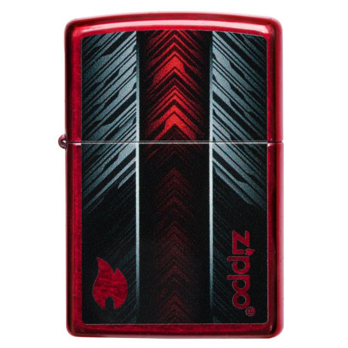 Deze Zippo in hoogglanzende uitvoering, werkt op benzine en heeft op de voorzijde een opdruk van een abstract patroon en in de onderhoeken Het Zippo Vlam Logo en Het Zippo Logo.