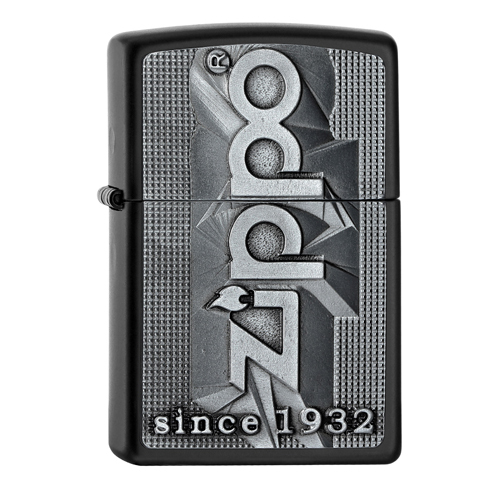 De Zippo benzine aansteker heeft een mat zwarte afwerking en is aan de voorzijde voorzien van een witte slijtvaste print van het bekende Zippo logo en de tekst "since 1932" verwijzend naar het jaartal waarop de fabriek van Zippo is opgericht.