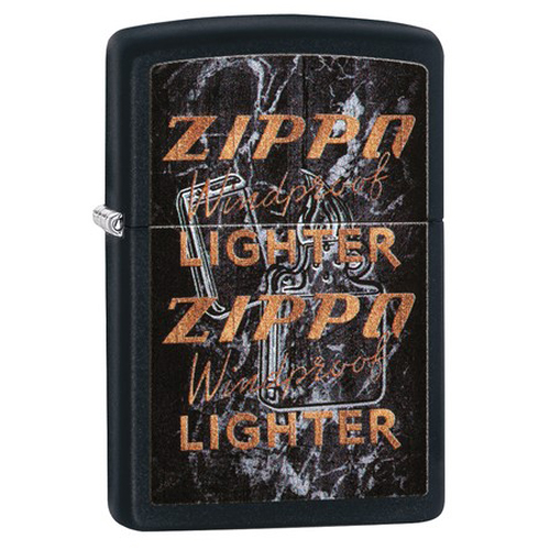 Zwarte Zippo aansteker met aan de voorzijde een...