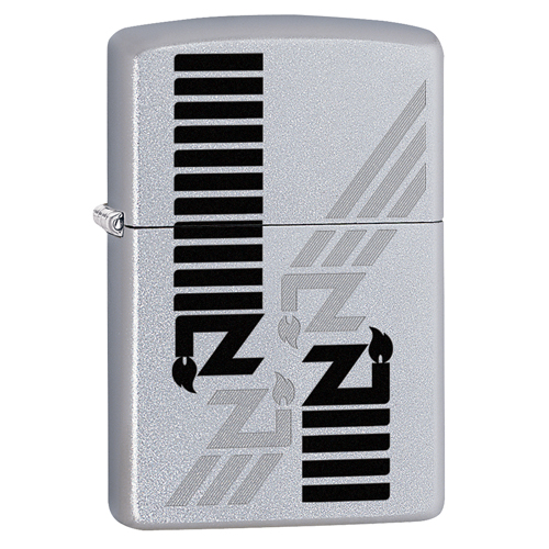 Mat chromen Zippo aansteker met aan de voorzijde een opdruk waar een reliëf in is verwerkt met het...