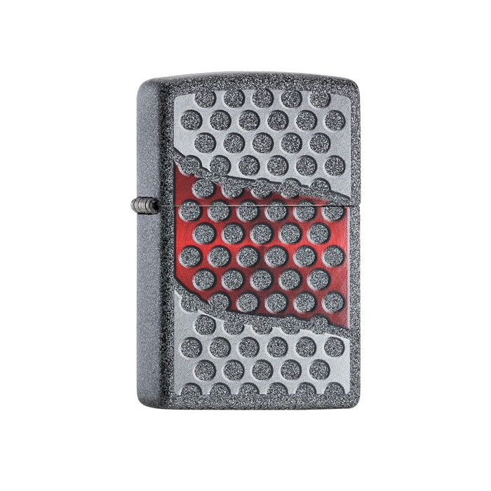 Zippo aansteker met een iron stone afwerking en aan de voorzijde een opdruk van een choom en amberkleurig ontwerp.