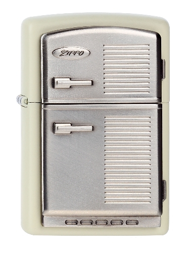 De Zippo bevat een 3D embleem van een koelkast (refrigerator).