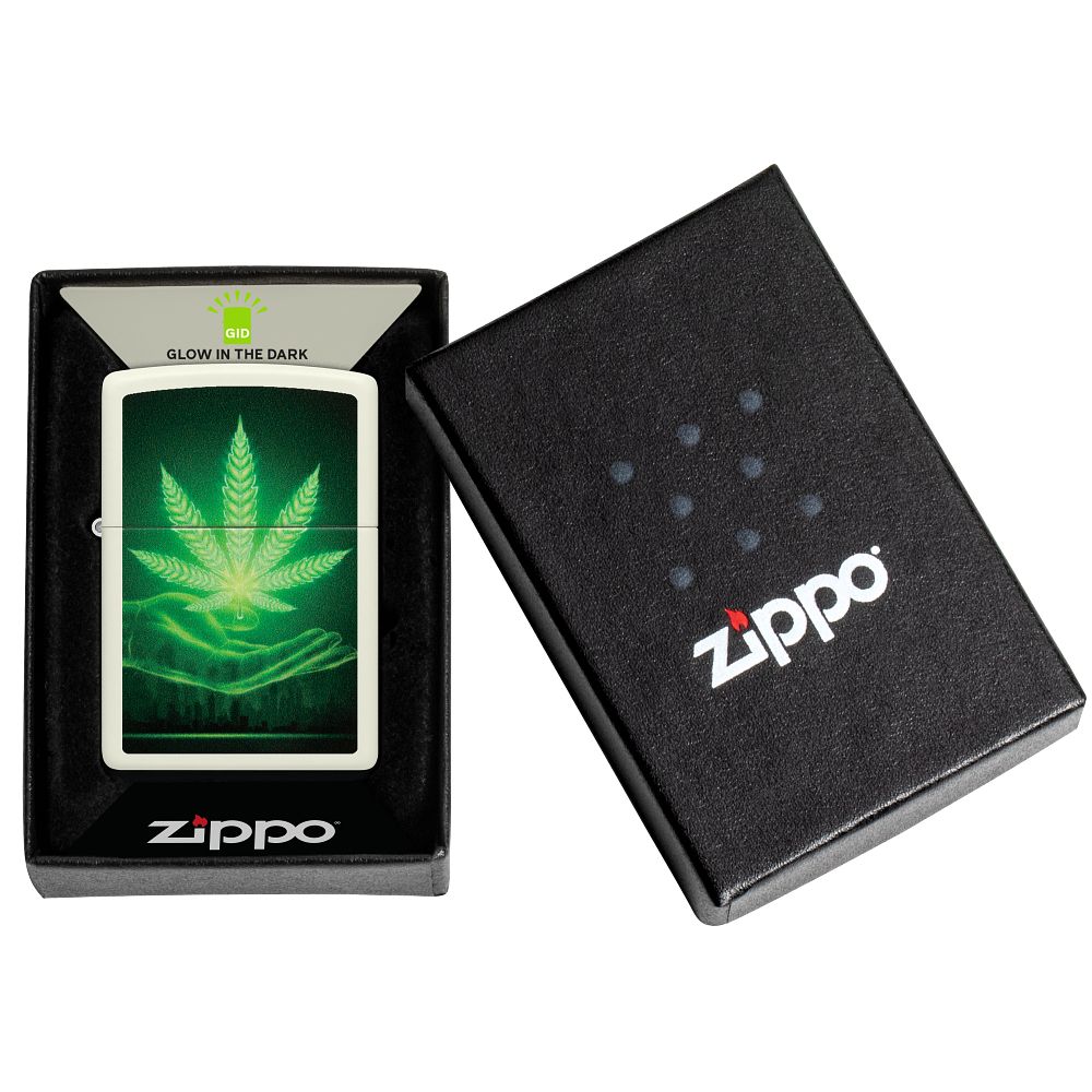 Zippo Glowing Cannabis Design.De Zippo Glowing Cannabis Design heeft een rondom een print van een...