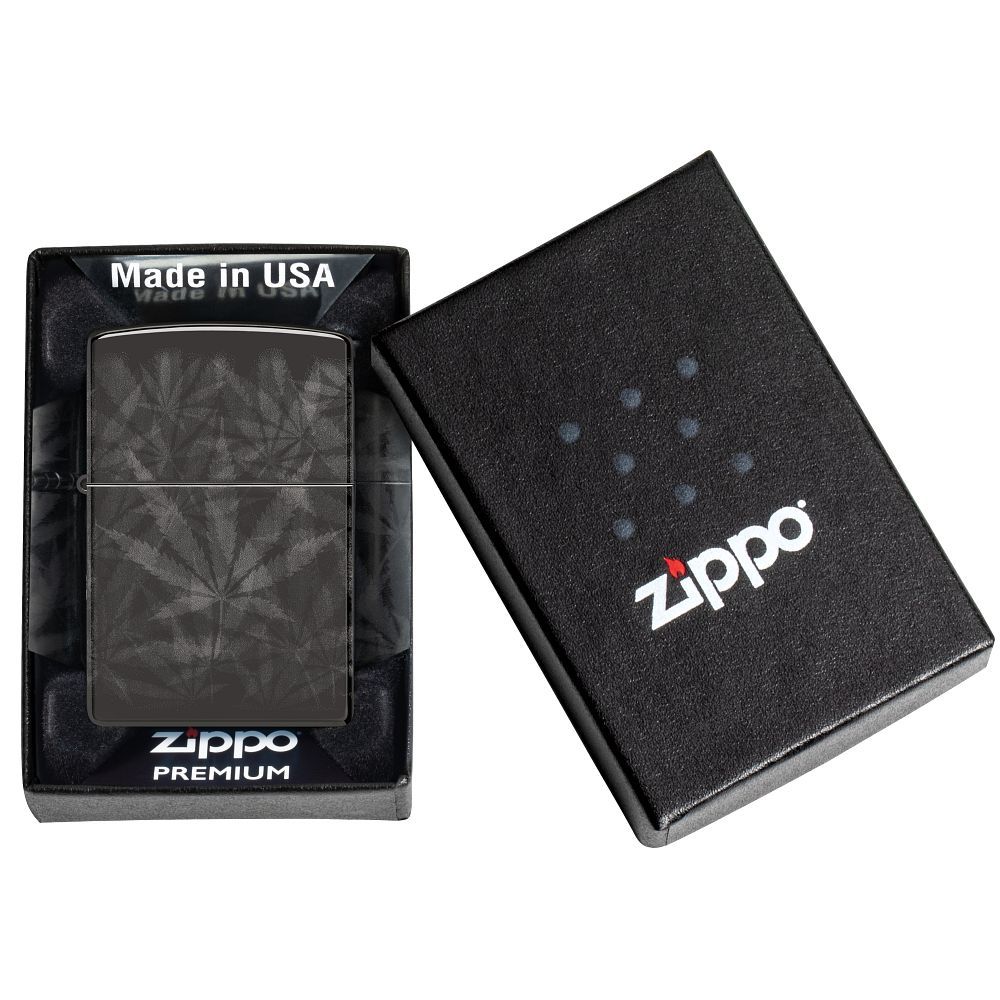 Zippo Glowing Cannabis Design.De Zippo Glowing Cannabis Design heeft een rondom een print van een...