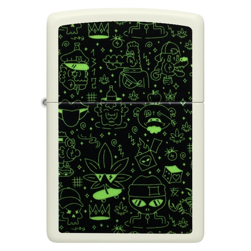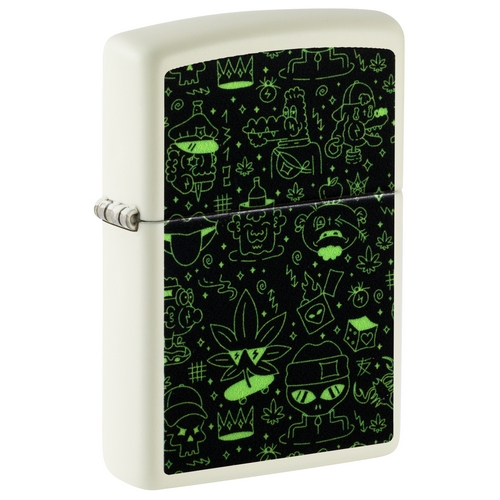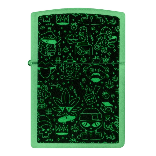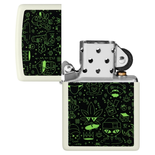 Zippo Glowing Cannabis Design.De Zippo Glowing Cannabis Design heeft een rondom een print van een...