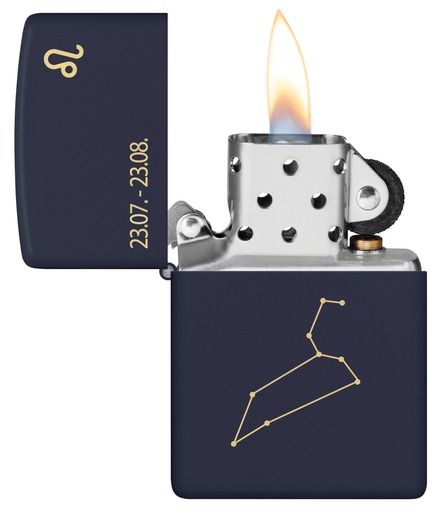 De Zippo Zodiac Aries Design benzineaansteker is mat navy...