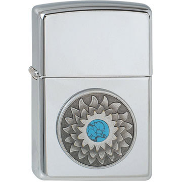 Zippo Turquoise Shield inclusief het graveren van een tekst. Klik hier om een lettertype uit te kiezen.