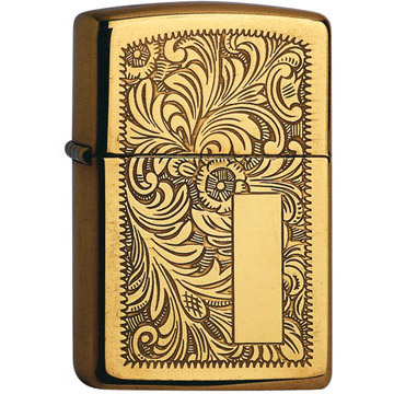 Zippo venetian brass inclusief het graveren van een tekst. Klik hier om een lettertype uit te kiezen.