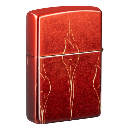 Deze Premium zippo aansteker heeft een volledige prachtige vlamkleurige coating met een tumbled afwerking waarin vlammen zijn gegraveerd.
