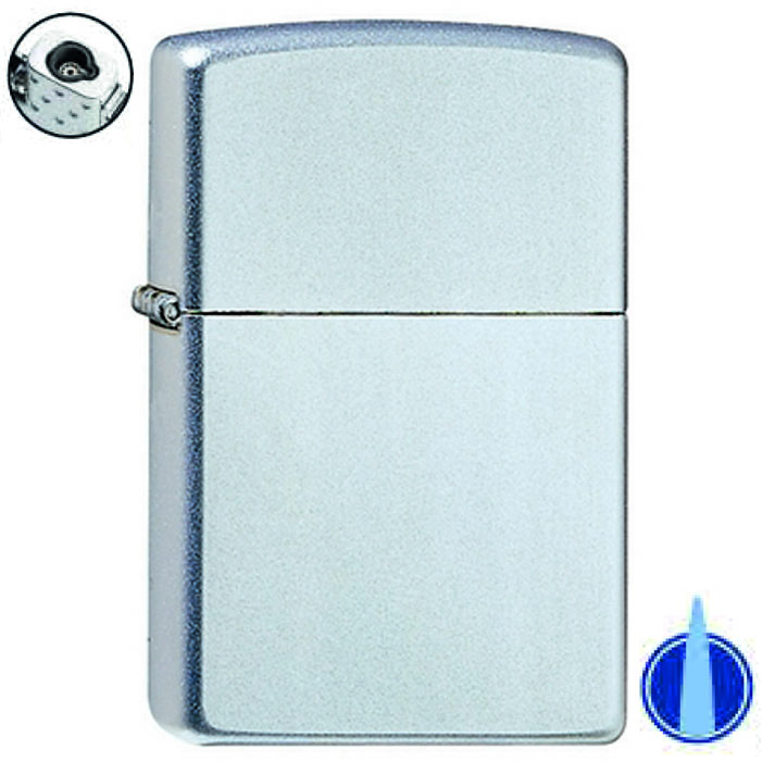 Satin finish Zippo gasaansteker met een stormvlam. Deze Zippo aansteker heeft een satijnen finish aan de voor en achterzijde.