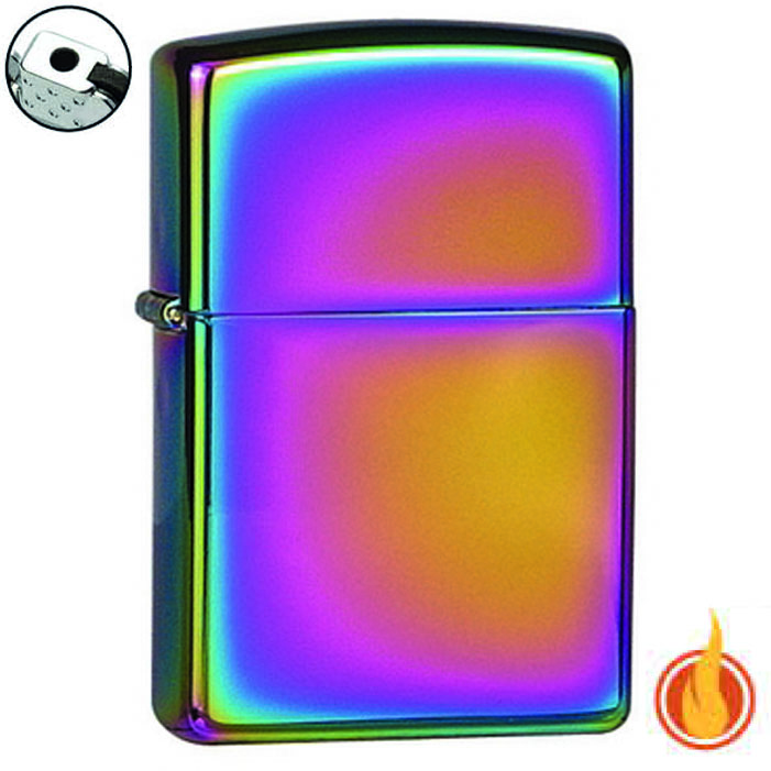 Zippo aansteker regular spectrum. Deze Zippo aansteker heeft een glanzende oliekleurige afwerking. Een Zippo aansteker is een zeer kwalitatieve aanstekers met de welbekende levenslange garantie, dit betekend dat de Zippo aansteker bij een defect gratis wordt gerepareerd. Deze Zippo heeft een speciaal binnenwerk die navulbaar is met butaangas. De aansteker geeft een zachte gele vlam. De Zippo werkt met een vuursteenontsteking net zoals de traditionele Zippo's